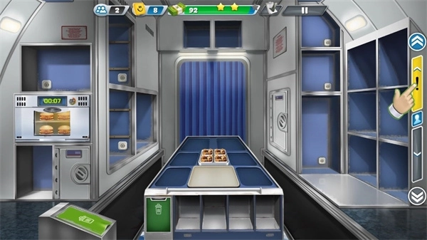 1、烹饪美味的餐点与甜点,在这款免费且极易让人上瘾的时间管理类烹饪游戏里,把它们供应给商业航班。