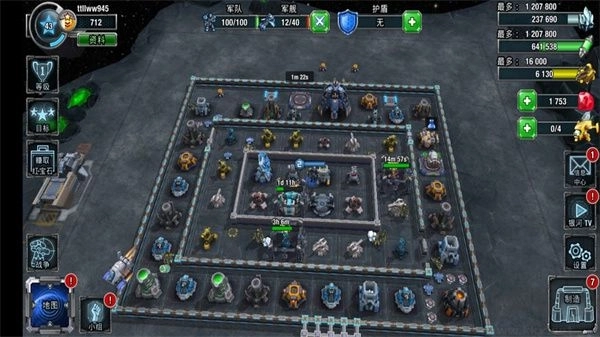 在未来的世界中,各种高端武器层出不穷,银河掌控系统为玩家们准备了各种各样的装备建筑,例如兵工厂、补给基地、防御塔、研究所、指挥所等,这些功能建筑也有自己的特有作用,制造士兵、研究更高级的士兵、更先进的防御塔等等。游戏随着整个战事的提升,玩家的基地需求也越来越大,不断的强化和升级自己的基地,才能制造出更强大的士兵。