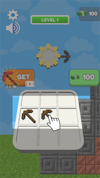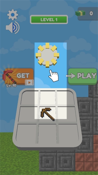 进入游戏后,先把锄头安装到挖掘机上,接着点击play就能进入关卡了。
