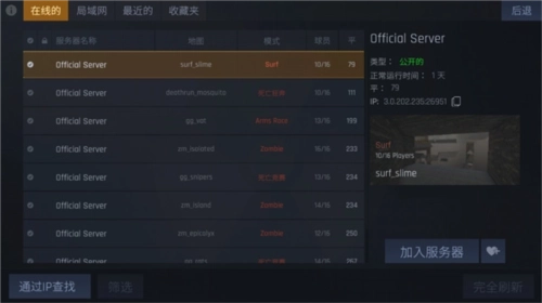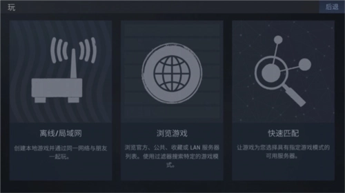 2、进入之后,这里会有3个服务器供你选择,3个都是联机模式,第一个是单独开房间,你可以拉其他的小伙伴进来玩耍,第二个是你加入其他的联机房间玩耍,你可以根据自己的需求选择;