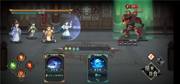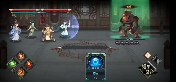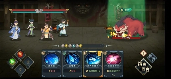 4.把凌白鹭的技能全部释放完,过程中抓住水系灵气的时机使用聂如嫣的逆水击,ps:技能满足条件处于增强状态时会有发光效果。