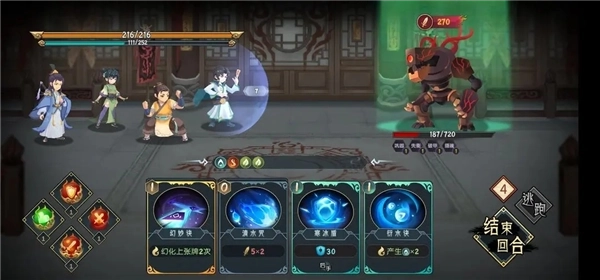地牢里只有初始小怪会求援,得优先处理它们。可以先用九天龙威搭配幻妙决,接着卡水属性的能量秒杀掉两个(或者一下就把它们吸成重伤状态)