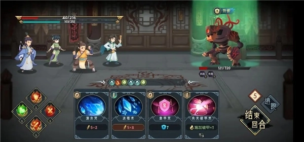 关键是第三回合,尽量避免主动攻击,先给对手上虚弱状态,接着用幻妙复制技能叠加护盾,全力叠盾就能扛住伤害;不过要是用伤害珠子的话其实能直接秒杀,实际打出来的伤害还是差了点。