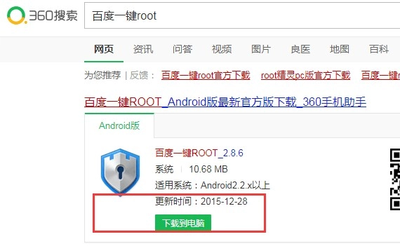 1、第一步,在电脑浏览器里进行搜索,然后安装百度一键root。