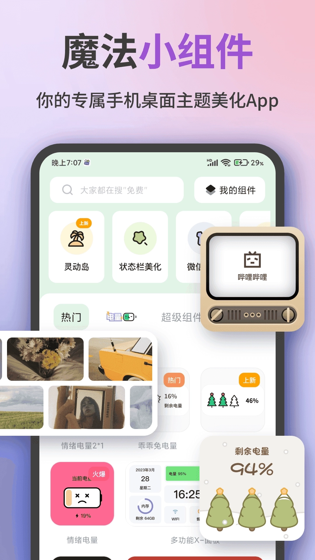 新上线的专属电量、灵动面板小组件和主题壁纸,正等待您的使用!