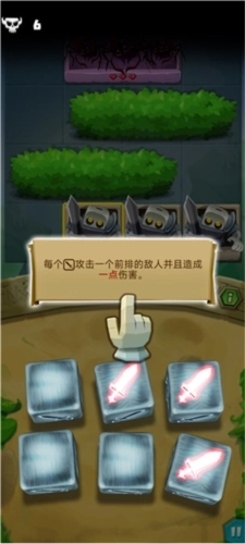 3、能够看到每一把刀剑的骰子都可以对前排敌人发起攻击,并且造成一点伤害。