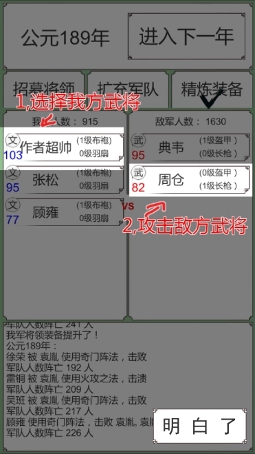 2、玩家需要根据自己对武将属性、技能的了解,以及对敌方情况的判断,做出相应的决策。