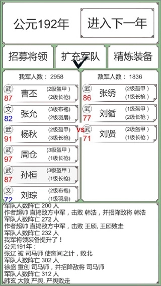 3、收录了三国时代的文臣武将,数百名独特的武将都会在这里出现,将他们收入麾下。