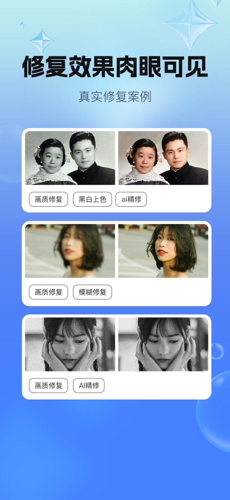 【照片修复】AI 智能一键修复老旧照片,对于模糊不清等因年代久远而受损的照片,一键即可还原清晰画质。