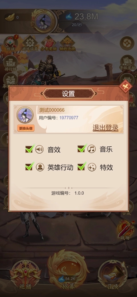 淘金三国游戏是一款全自动离线挂机游戏,让玩家在游戏中轻松获得收益。注册即送88体力值,998个元宝即可复投武将,增加体力值就意味着增加收益!每得100个元宝,就能获得2.8圆的收益,1000个元宝更是每天能收益28圆!直接点对点交换,出售元宝,提取到支付宝,方便快捷。