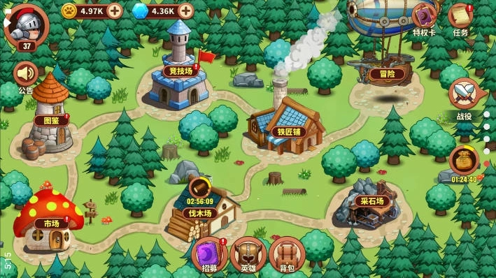 2、资源采集与建设:除了战斗环节,玩家还需投入精力进行资源的采集与建设工作。通过挖矿、砍树等操作,玩家能够获取各类资源,这些资源可用于装备制作、建筑升级或是英雄能力的提升。玩家需要对资源和时间进行合理规划分配,从而保障队伍与家园的稳步发展。