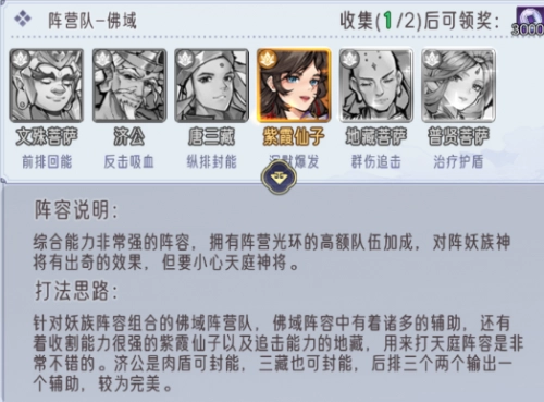 阵容搭配:文殊菩萨、济公、唐三藏、紫霞仙子、地藏菩萨与普贤菩萨