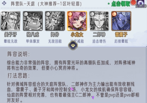 阵容配置:紫霞仙子、二郎神、小龙女、孙悟空、判官与姜子牙