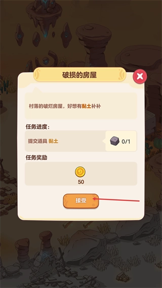 2、弹出【破损的房屋】任务窗口,点击下方【接受】按钮。