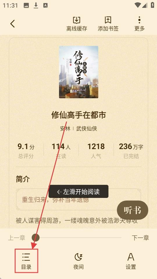 进入小说详情页后,点击【目录】按钮,即可查看该小说的章节列表。