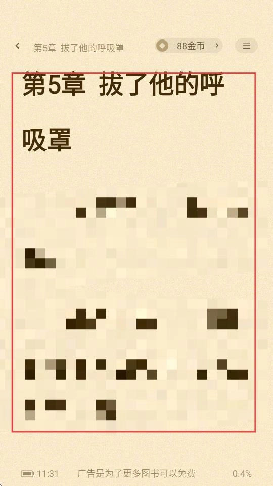4、选好章节后,就能进入该章节的阅读页面,像【第5章拔了他的呼吸罩】,就可以开始阅读了。