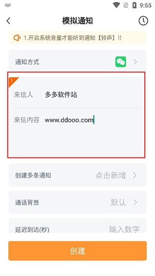 4、填写来信人信息,来信内容、延迟时间、通话背景