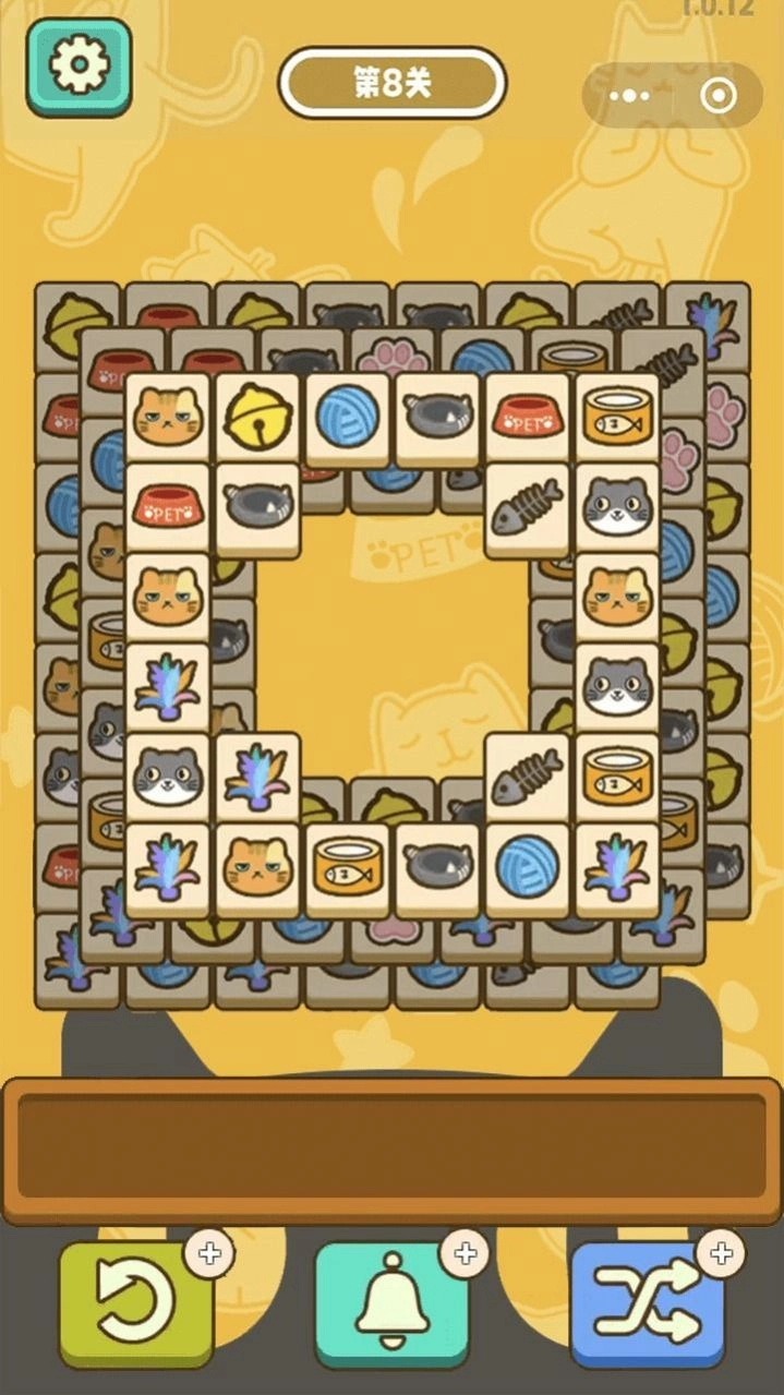 1、在喵了个猫猫游戏中你需要将所有的方块全部消除。连续点击三个相同的方块才能消除,要注意下面的槽不要放满了哦。这个版本中道具可以无限使用,通关变得更加容易