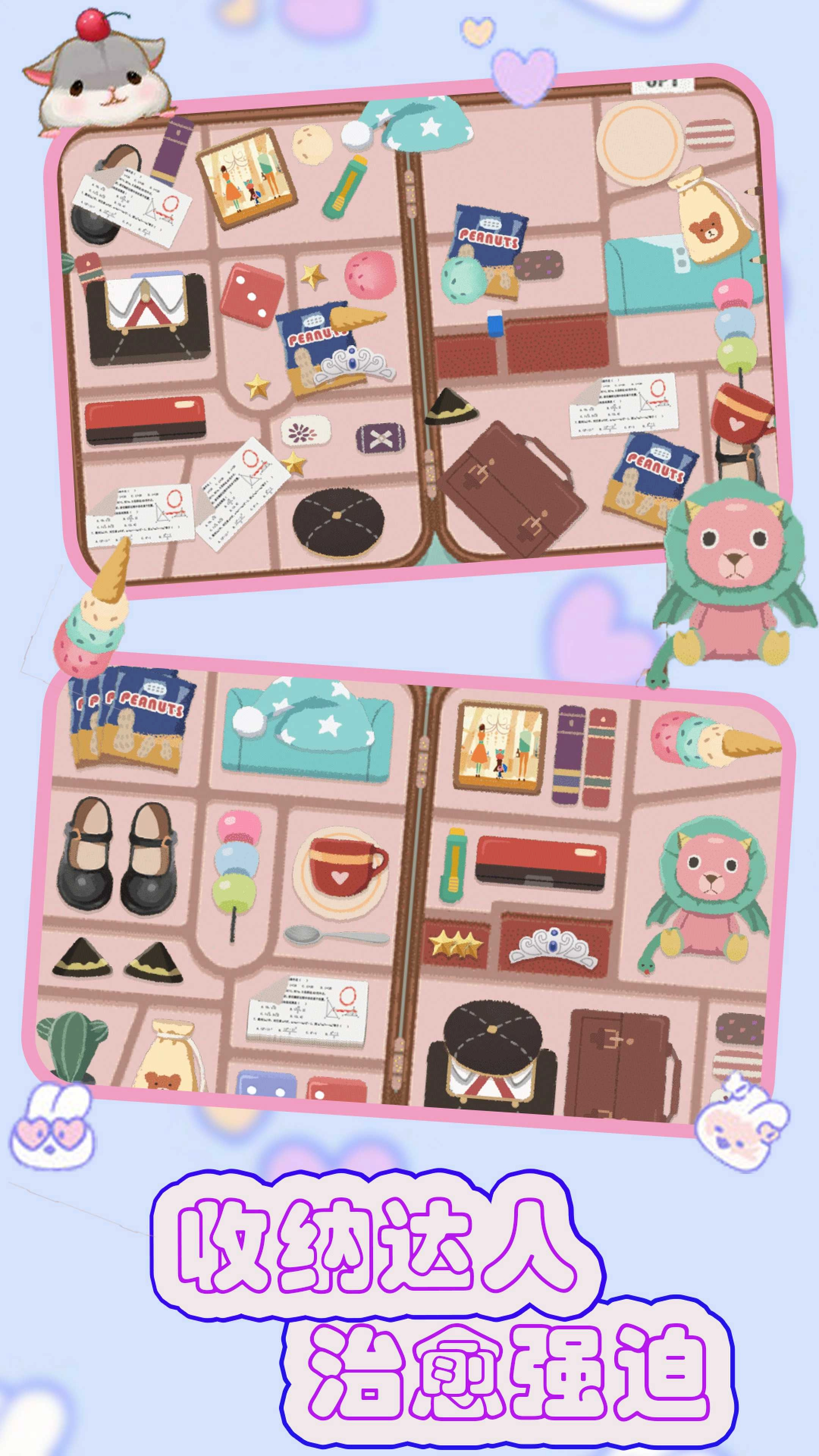 3、看着自己完成一系列的挑战,收获多多的快乐,成为收纳高手。舒缓的背景音乐,无聊的时候来进行整理,享受惬意的时光。