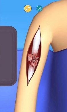 使用工具将皮肤缝合,经过外科医生的治疗,可以控制流血的情况,帮病人减轻痛苦,有趣的卡通游戏场景,能让更多人了解外科医生这个职业,体验医生的日常,培养责任感。