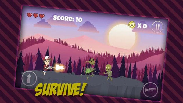 在这款全新的动作游戏里,你需要借助跳跃动作,同时进行射击来消灭僵尸军团。