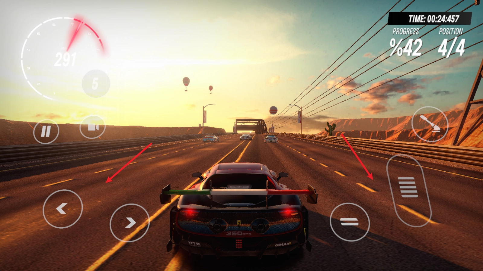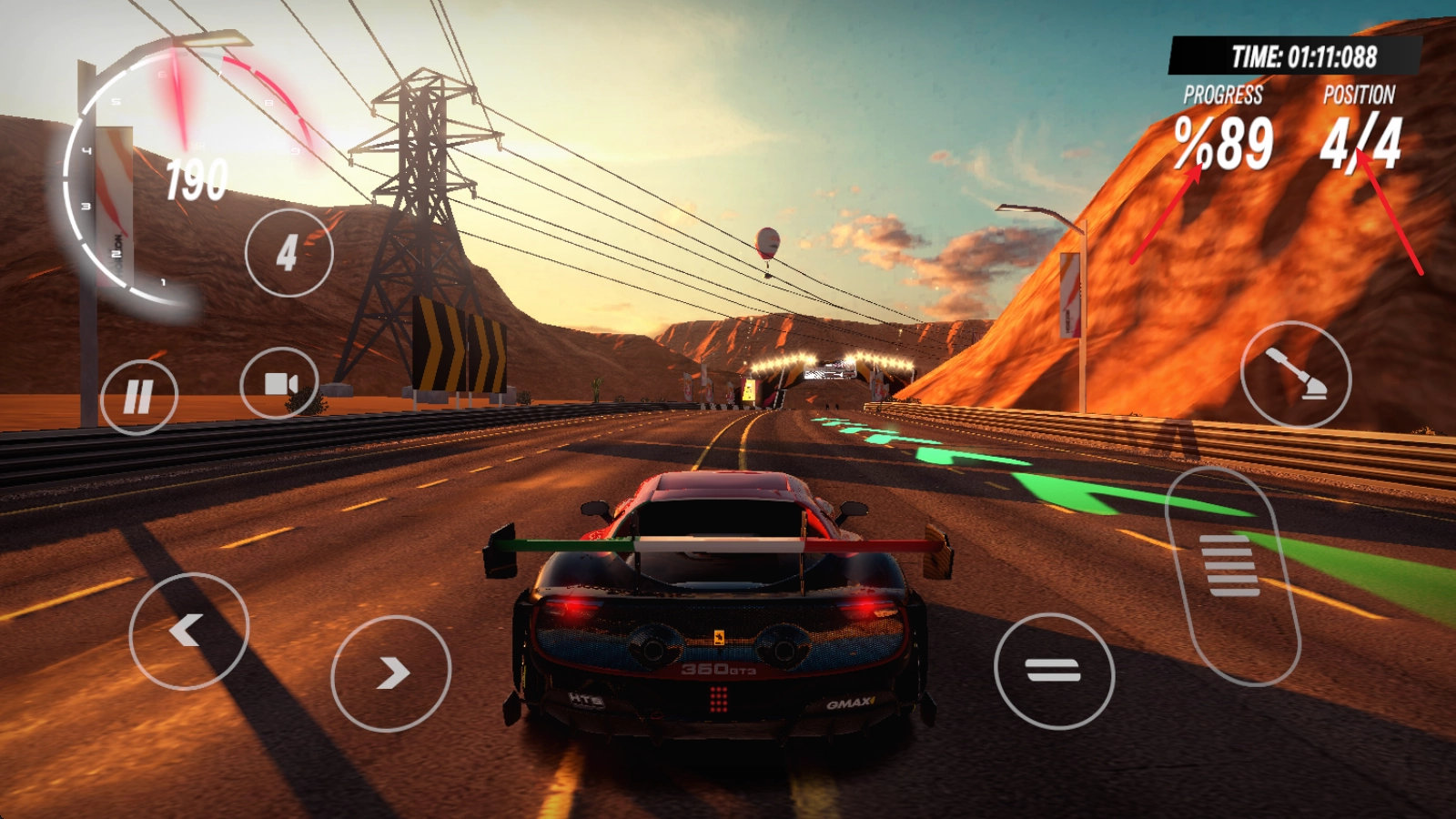 比赛开始后,你可以用左侧的方向键来调整转向,右侧的长踏板用来加速,短踏板则能实现后退操作。