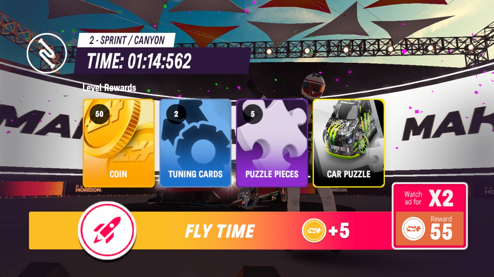 5、冲过终点后就会结束比赛,并根据名次获得奖励。