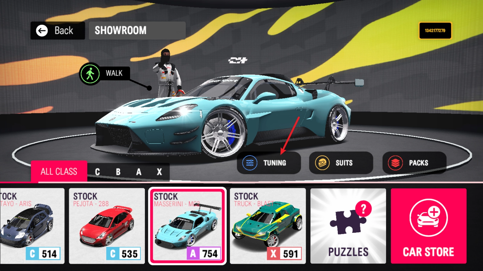 3、之后回到车库里,点击TUNING,就能进入改装界面。