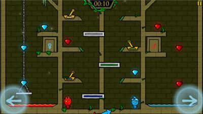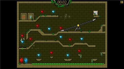 2. 倘若液体面积过大,致使人物无法通行,此时要去寻找机制与石头,操控与液体颜色相同的人物推动石头,在液体之上铺设道路,以便让另一个冰火人顺利通过。
