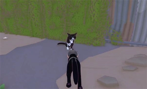 看到一个猫咪,走过去。