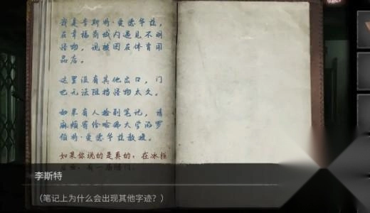 当流程临近尾声,男主被人偶追至穷途末路时,他会在笔记本上留下遗言,过段时间便会收到带有暗门线索的回复。进入暗门后,他来到一处类似书房的空间,至此序章落幕,正式开启第一章。