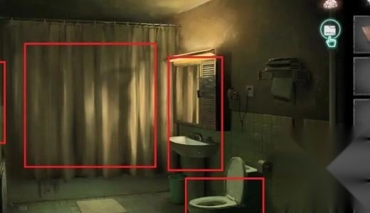 首先和帘子进行互动,拉开帘子后会发现里面并没有人在洗澡,不过拉开帘子的同时喷头会出现损坏,浴缸里会注满水,并且有女鬼从浴缸里爬出来(这里有高能场景)。等高能场景结束后,就能在浴缸旁边找到一辆红色的玩具车和一支蜡烛。