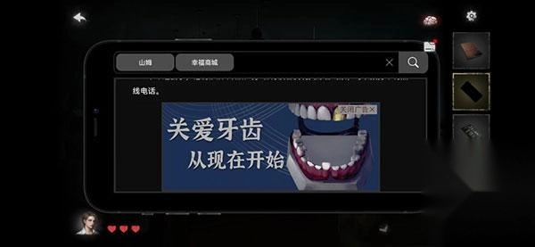 14、通过手机搜索(关键词参考图片),留意到下方的广告,从中获取到线索5。之后再去寻找并获取金牙。