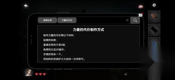 16、按照搜索到的方法,在吧台上调配出“力量的代价”,让男人喝下后,就能获得“掉头”效果。