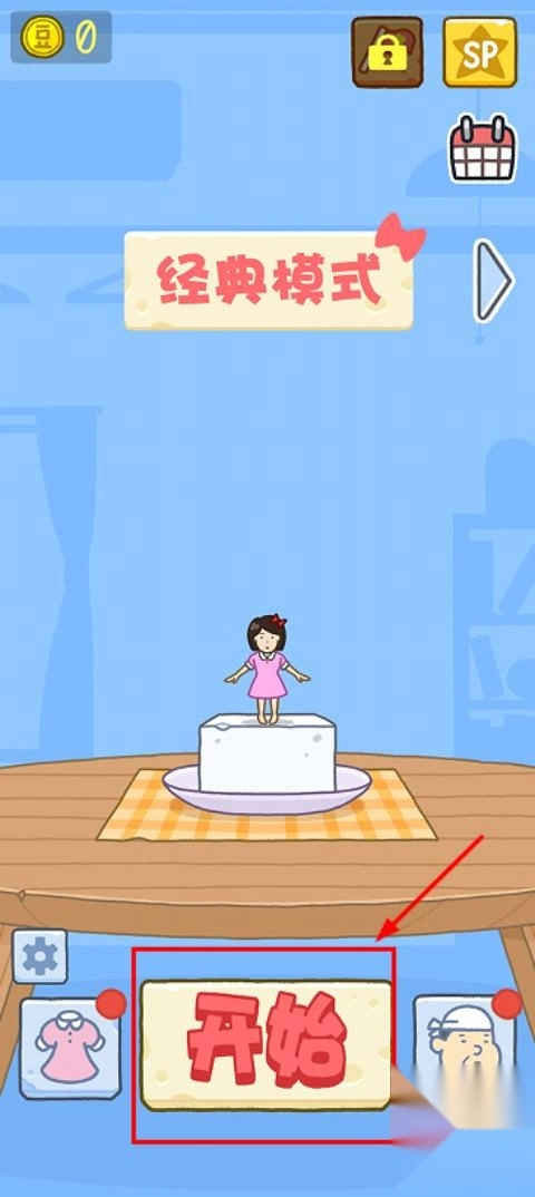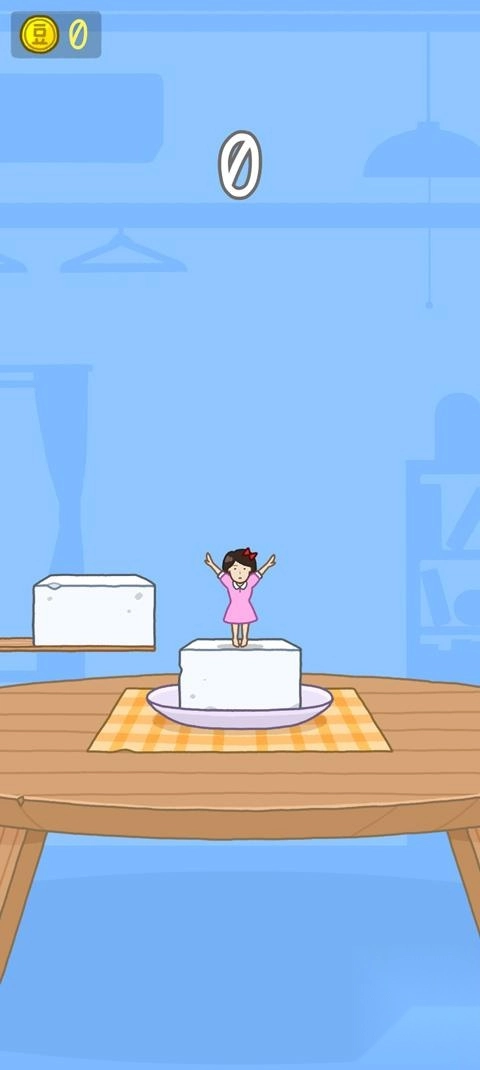 2、这里以经典模式为例,点击开始,进入游戏如图,玩家需操纵豆腐女孩进行跳跃来堆叠豆腐;