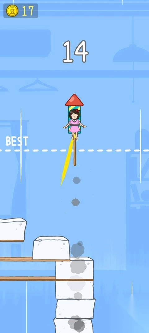 3、游戏内还有着不同的豆腐,有的豆腐跳跃成功后获得特殊道具,如火箭,可帮助玩家快速向上前进;