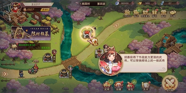 1、要是得到了品质更好的武将,你可以点击原本在战场上的防御塔。
