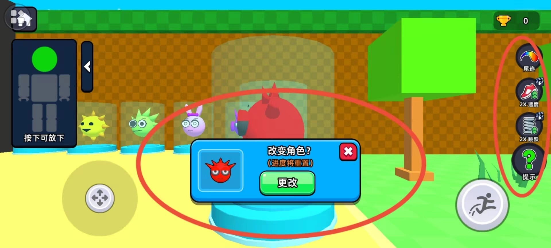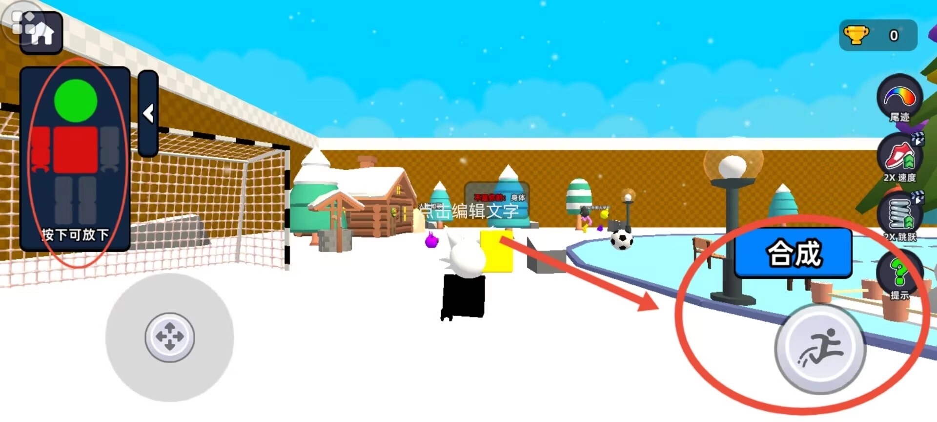 2、界面右侧呈现目标角色模板,遇到匹配部件时可开展组合操作,底部配备了移动与跳跃功能按键。