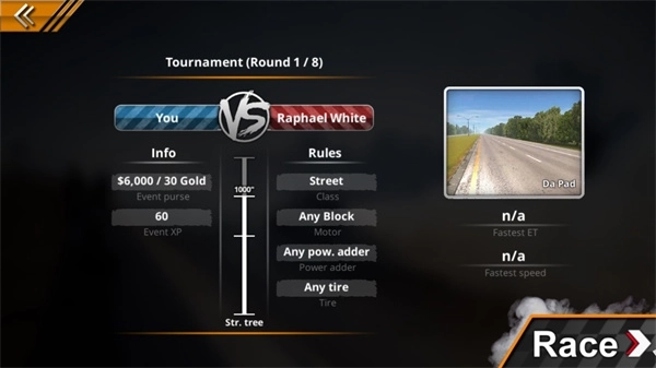 5、进入后还需选择一张地图来挑战,选好后点击race;