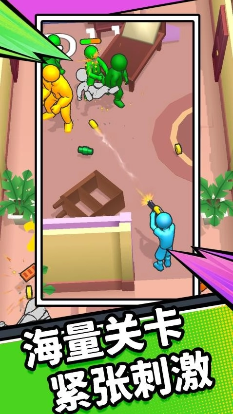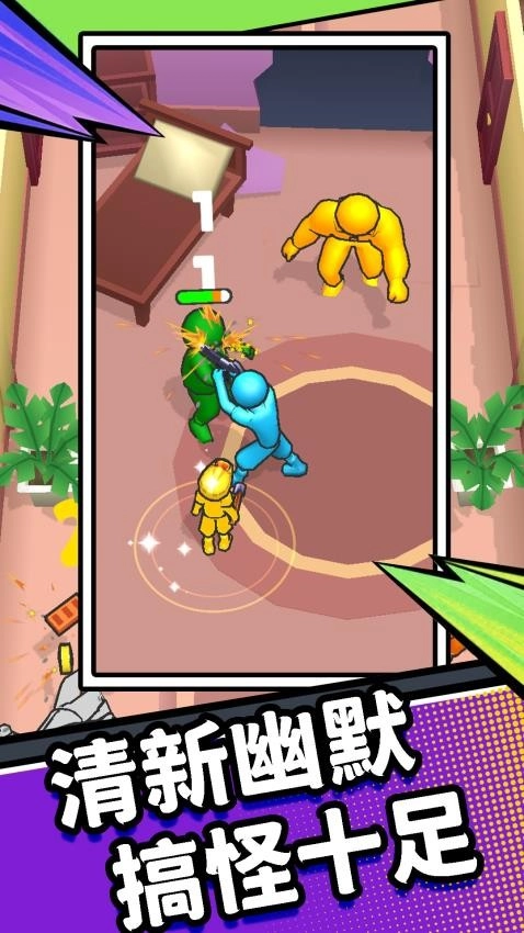橙绿小人儿的夸张动作+爆笑特效,严肃枪战秒变解压喜剧,越玩越开心~