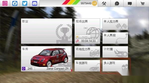 1、进入拉力赛车3,点击多人游戏。