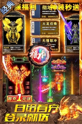 首充送双倍元宝,新服开服享受更多惊喜新人礼包