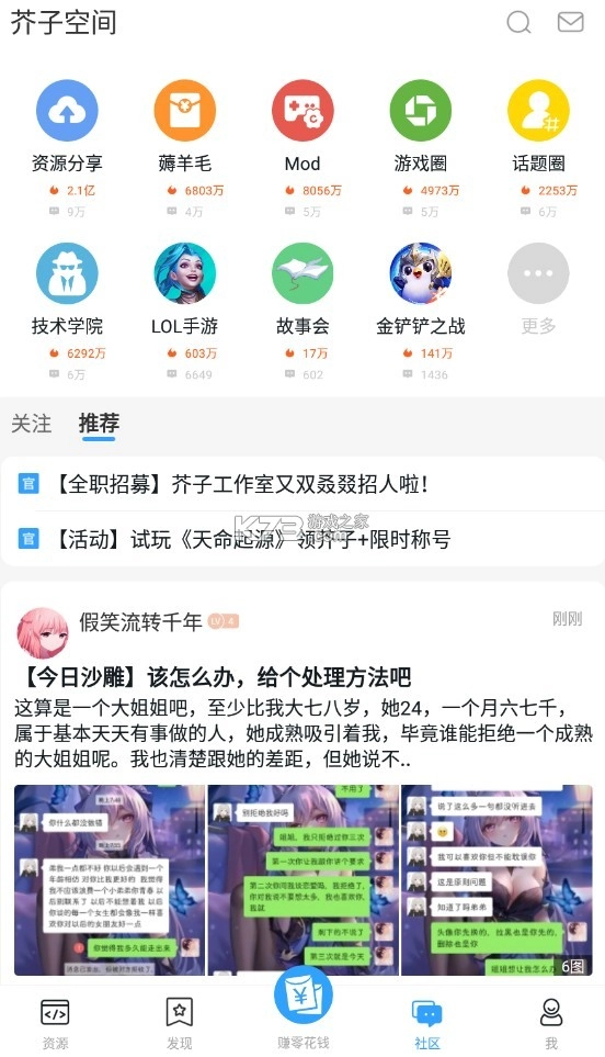 该软件具备多样化的分区设置,用户能够在这些分区内展开聊天、互动以及资源共享等活动。