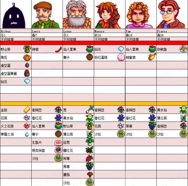 星露谷物语汉化版人物喜好攻略