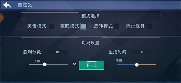7、在自定义中,玩家还可以自定义游戏的模式、分数、时间等
