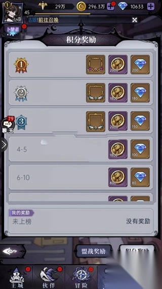 每场挑战结束,胜者都能获取对应的积分,这些积分将用于最终排名。每场比赛结束后,参战的伙伴会继承上一场的血量与阵亡状态,若战斗回合达到上限,伤害值总量高的一方获胜。通过个人积分来确定盟战排名,获得第1名可得到盟战王者称号。玩家佩戴此称号,能提升攻击力与生命值,同时还可获得联盟贡献值以及金币道具奖励。