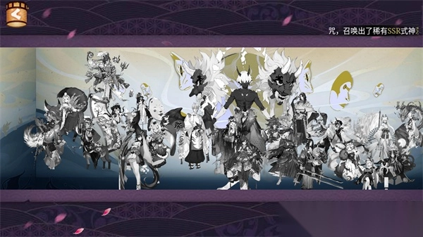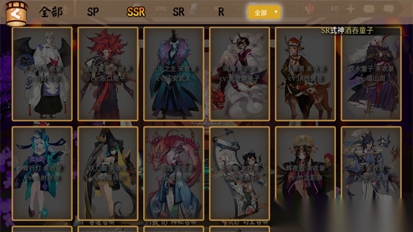 4、此外,在式神录中会收集玩家抽卡获得的所有图鉴,并按照SP、SSR、SR、R的分类进行详细总结。而在式神绘卷里,同样依据SP、SSR、SR、R的分类,为你展示式神绘卷中的精美图画。