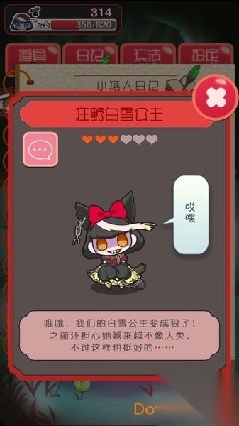 在游戏设定里,白雪公主遭遇不幸,被毒苹果给毒死了……在游戏过程中,玩家要是操控僵尸给白雪公主喂苹果,她便能实现进化成长。当白雪公主吃了苹果后,会掉落苹果的种子,这些种子能够用来兑换各式各样的便利道具。而且这款游戏还具备语音功能,玩家只需轻轻点击白雪公主这个角色,就能听到她用超萌的声音说出一些口味稍重的台词,要是角色升级了,台词也会跟着有所变化呢!