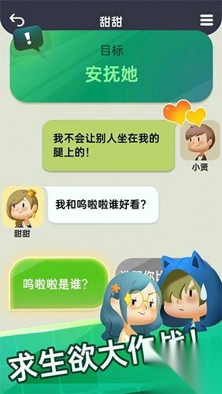 《你会聊天吗》是一款以模拟社交场景为特色的益智对话类游戏,借助轻松有趣的聊天闯关模式,助力玩家增强在现实生活中的沟通能力。在游戏里,你会和朋友、同事、家人、情侣等不同身份的角色展开模拟聊天互动,从而灵活处理生活中可能出现的各类情境与问题。游戏设有大量充满趣味的关卡,涉及情感话题、职场交流、网络社交等多个层面,玩家做出的不同选择,会导向全然不同的对话结局。有时得委婉且机智应对,有时则需另辟蹊径,每一关都对玩家的应变能力与话术技巧发起挑战。该游戏适合各个年龄段的玩家,让大家在娱乐过程中提升沟通表达能力。