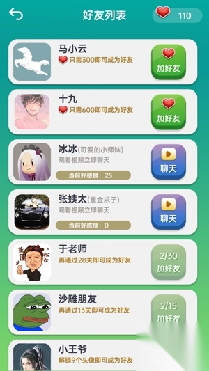 -增加“好友列表”功能,开启特殊对话任务;